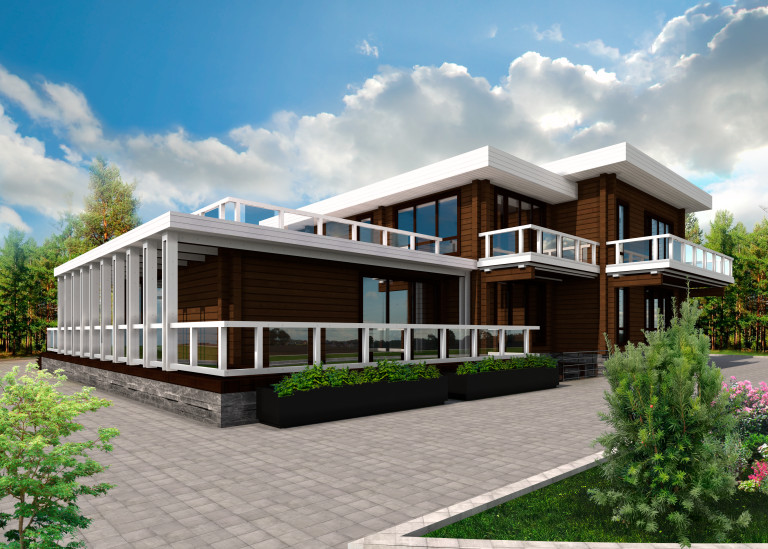 «Меридиан» - актуальный проект, вмещающий в себя всё что нужно активному и современному человеку. Главной особенностью дома является большая беседка, которая может превратиться в спортзал или зимний сад. На первом этаже помимо беседки украшением дома является просторная гостиная со вторым светом, и кухня- столовая. Спальни дома собраны на втором этаже и каждая имеет выход на балкон. На цокольном этаже разместилась банная зона с хамамом и парной, а также уютный кинозал, там же спрятана от посторонних глаз бытовая жизнь дома.