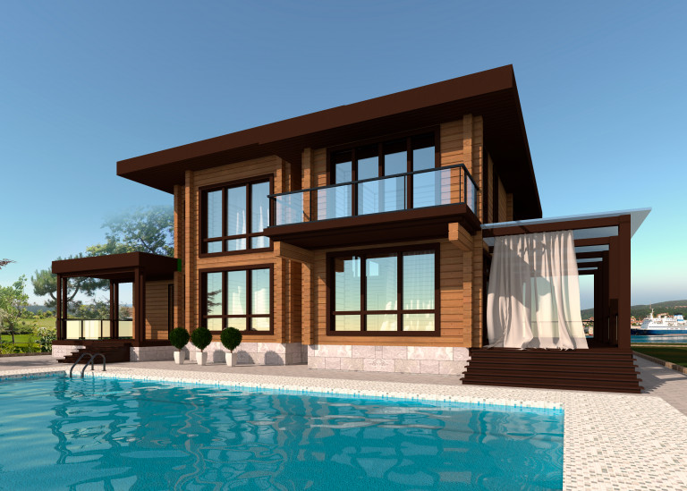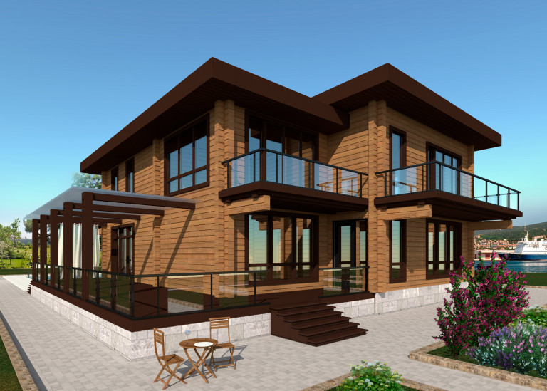 «Лагуна» - компактная версия проекта «Меридиан». Ядром первого этажа является гостиная и кухня-столовая, которая имеет выход на открытую террасу, так же здесь просторная гостевая спальня и кабинет. Второй этаж включает в себя три спальные комнаты и санузлы. Наличие открытых террас и балконов в современном исполнении отлично адаптируют проект для теплого климата.