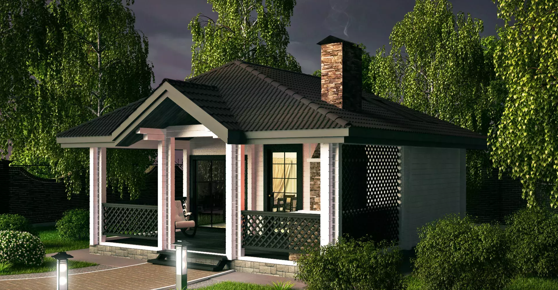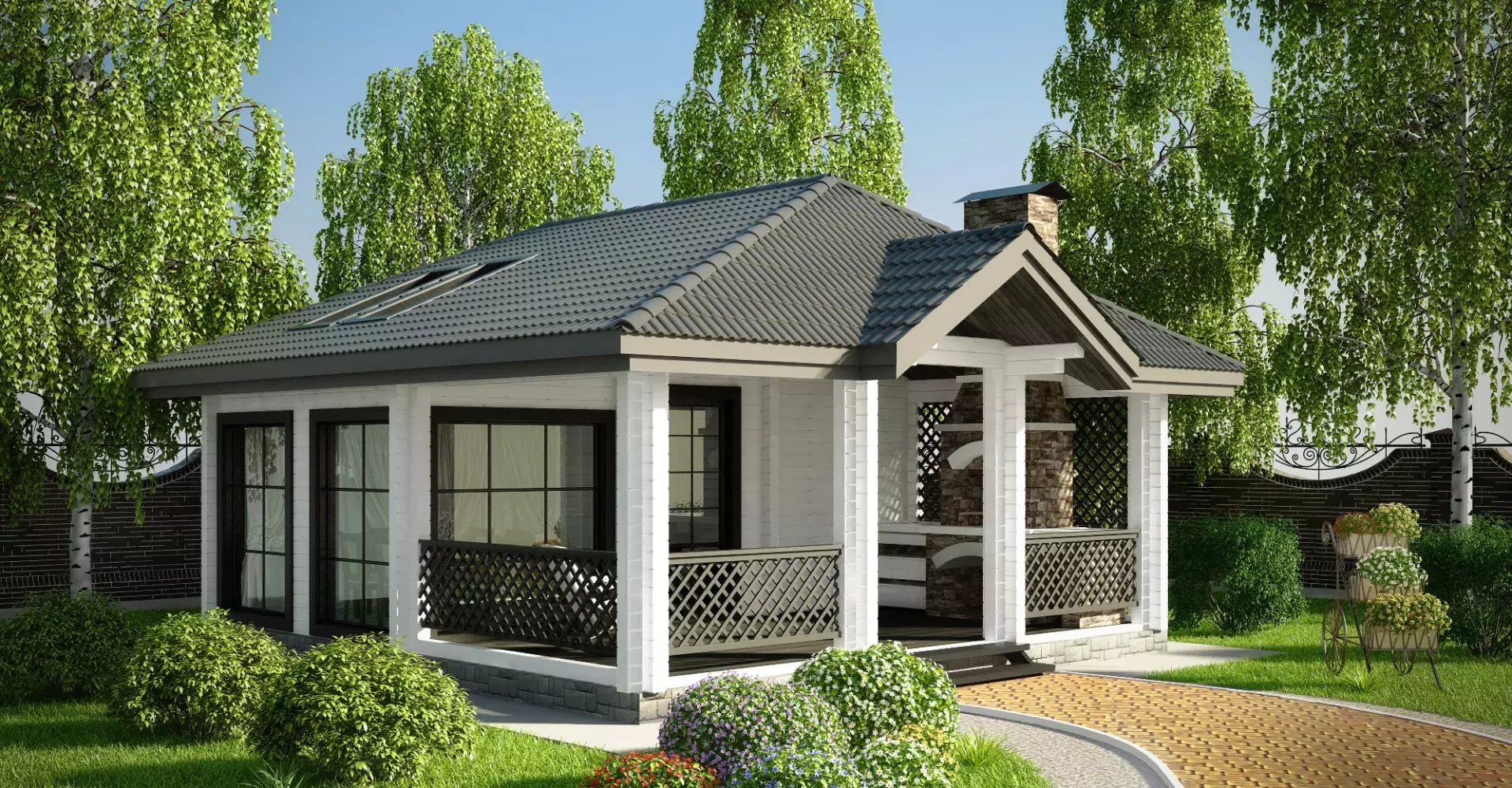 Универсальный проект летней кухней из клееного бруса с беседкой. Сочетание открытого и закрытого пространств позволит насладиться отдыхом в большой компании при любых погодных условиях.