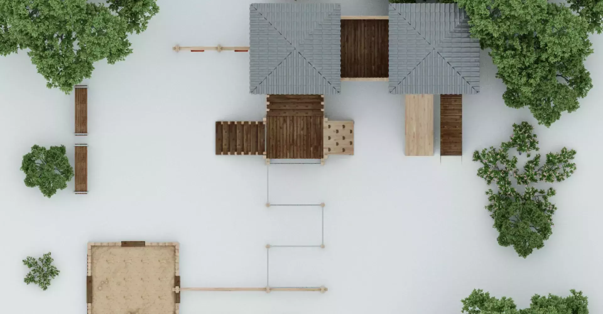 «Городок» стает любимым местом для игр Ваших детей! Площадка состоит из наборных элементов: песочницы, домиков, скаладромов, горок и турников, которые могут комплектоваться в различных вариациях, а так же использоваться отдельно.