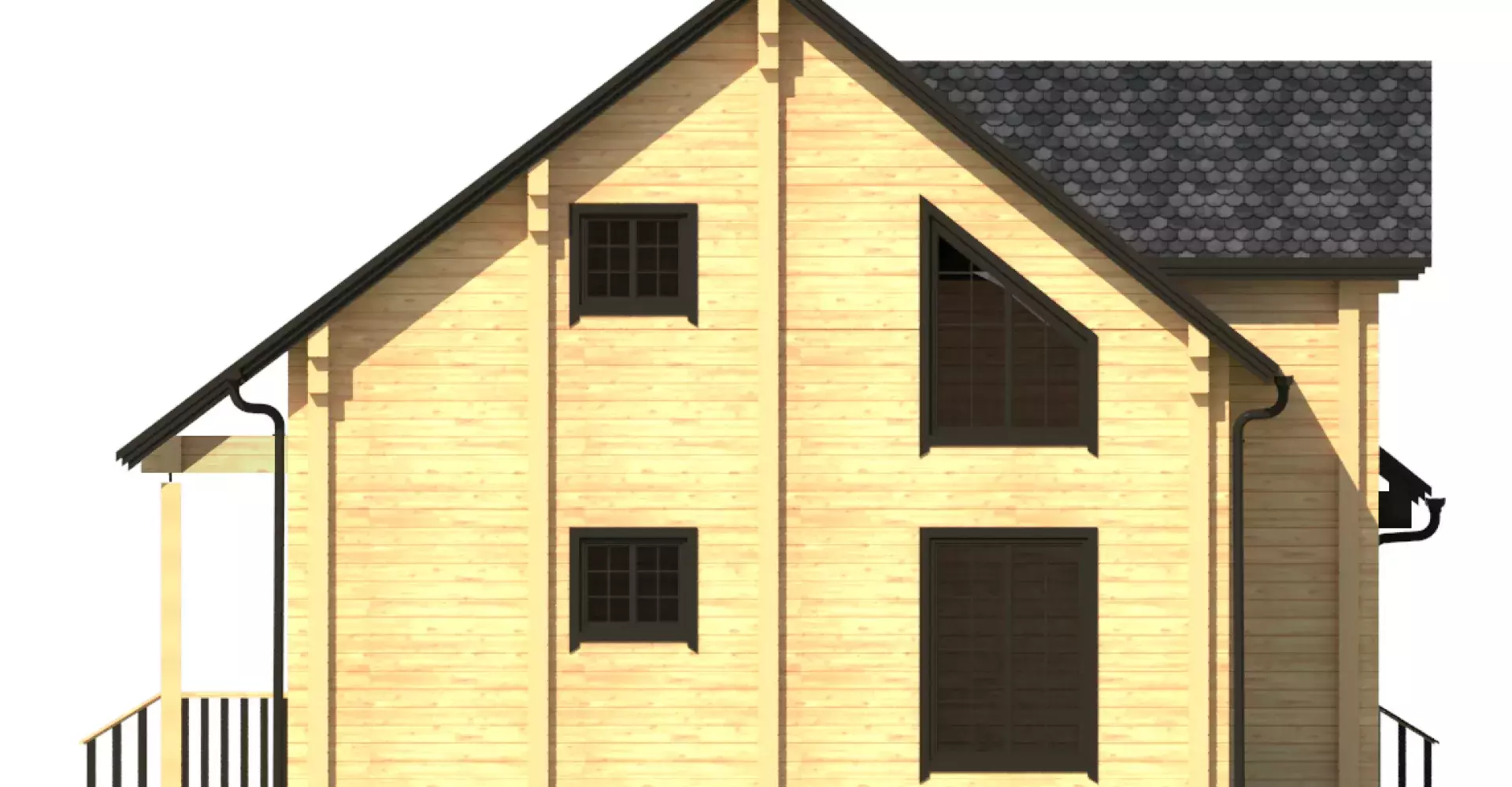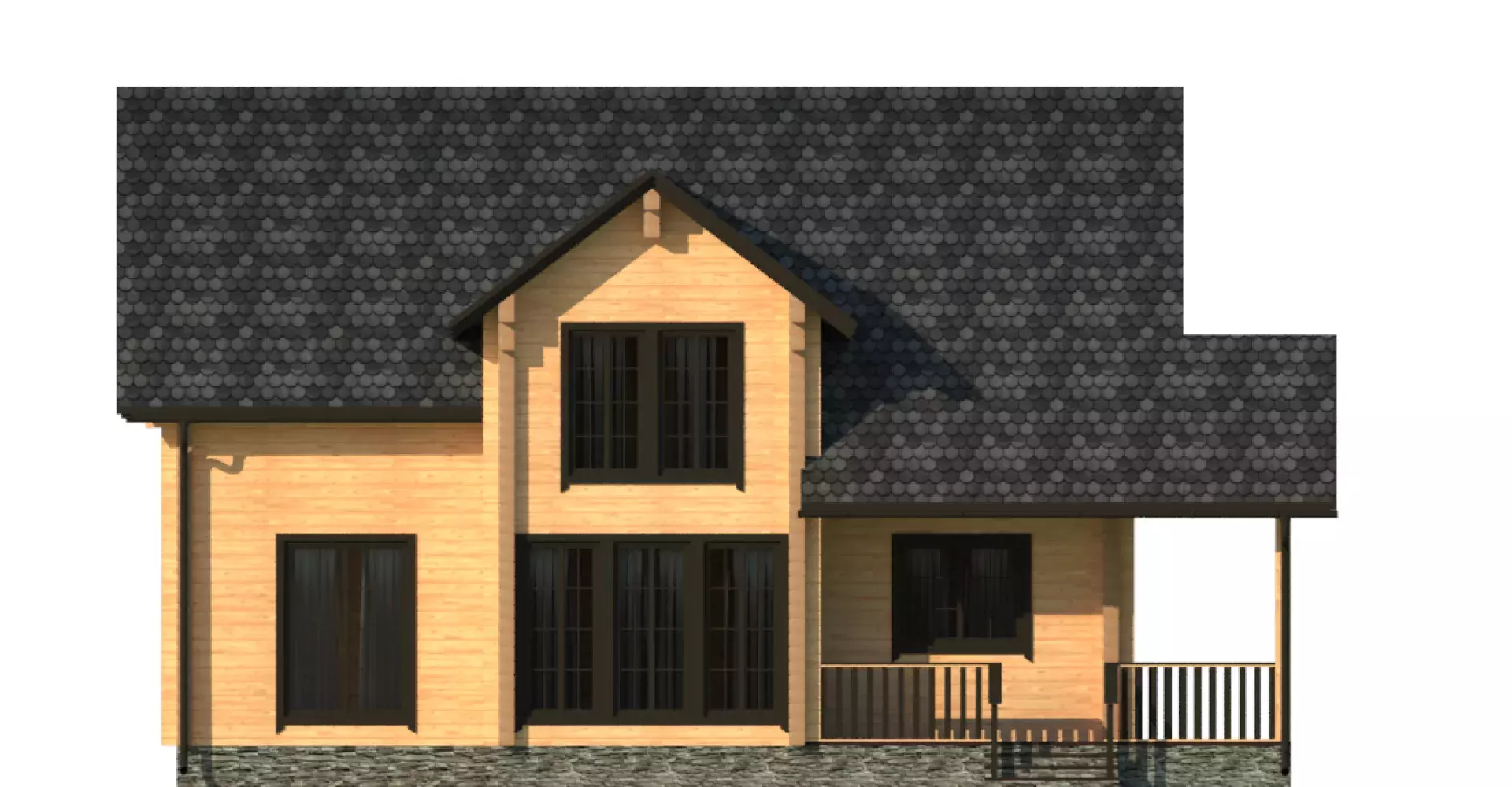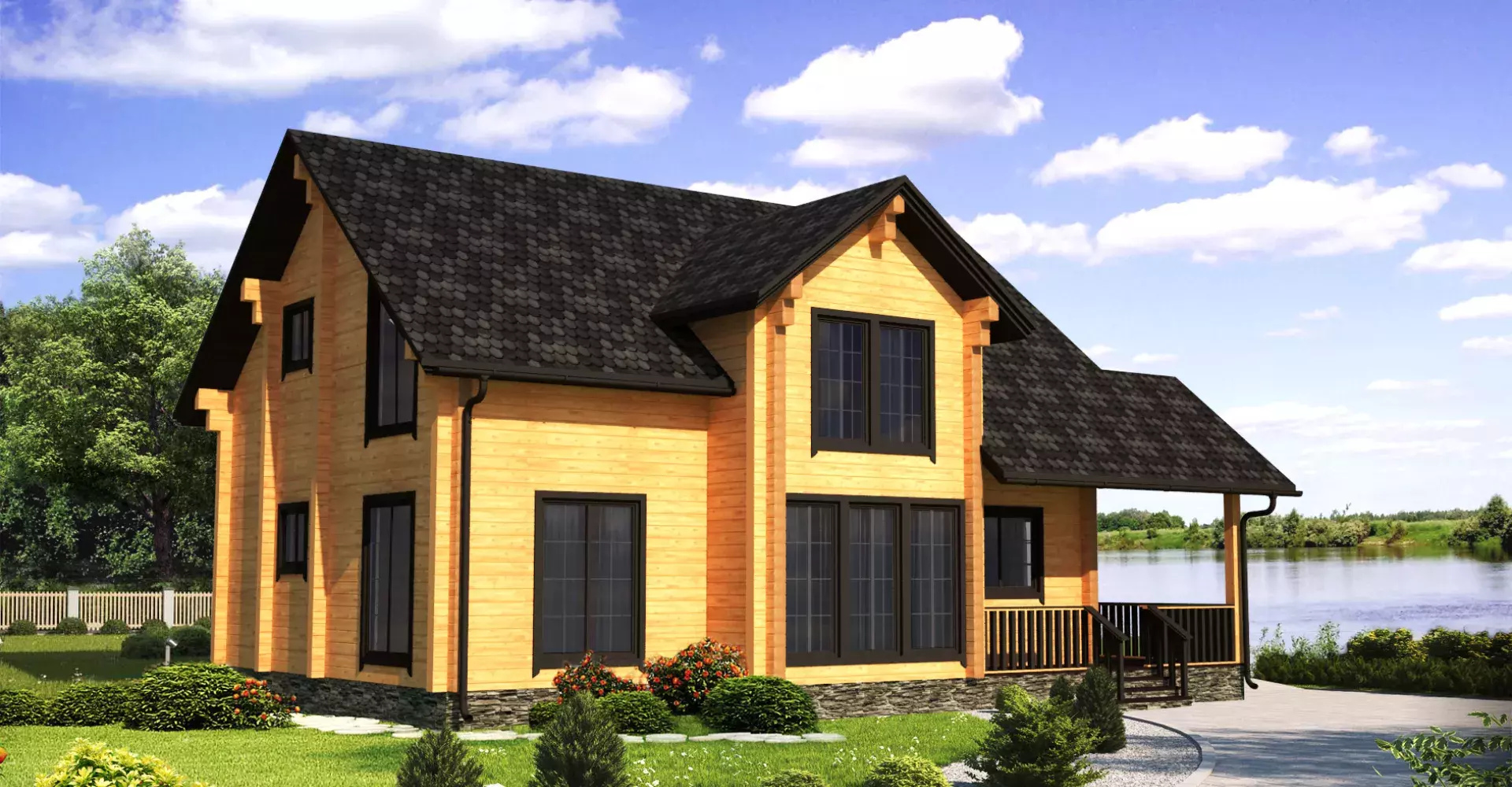 Двухэтажный дом из клееного бруса, комфорт и уют которого не оставят никого равнодушным. На первом этаже помимо технических помещений располагаются спальня, кухня и просторная гостиная с панорамным остеклением. Из гостиной имеется выход на террасу, где можно проводить время и любоваться красотами в теплое время года. Второй этаж представлен тремя спальными комнатами. Одна из них имеет собственную гардеробную и санузел.