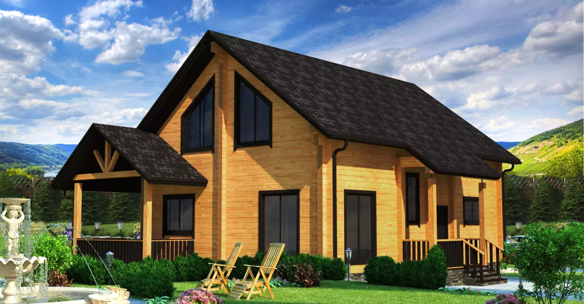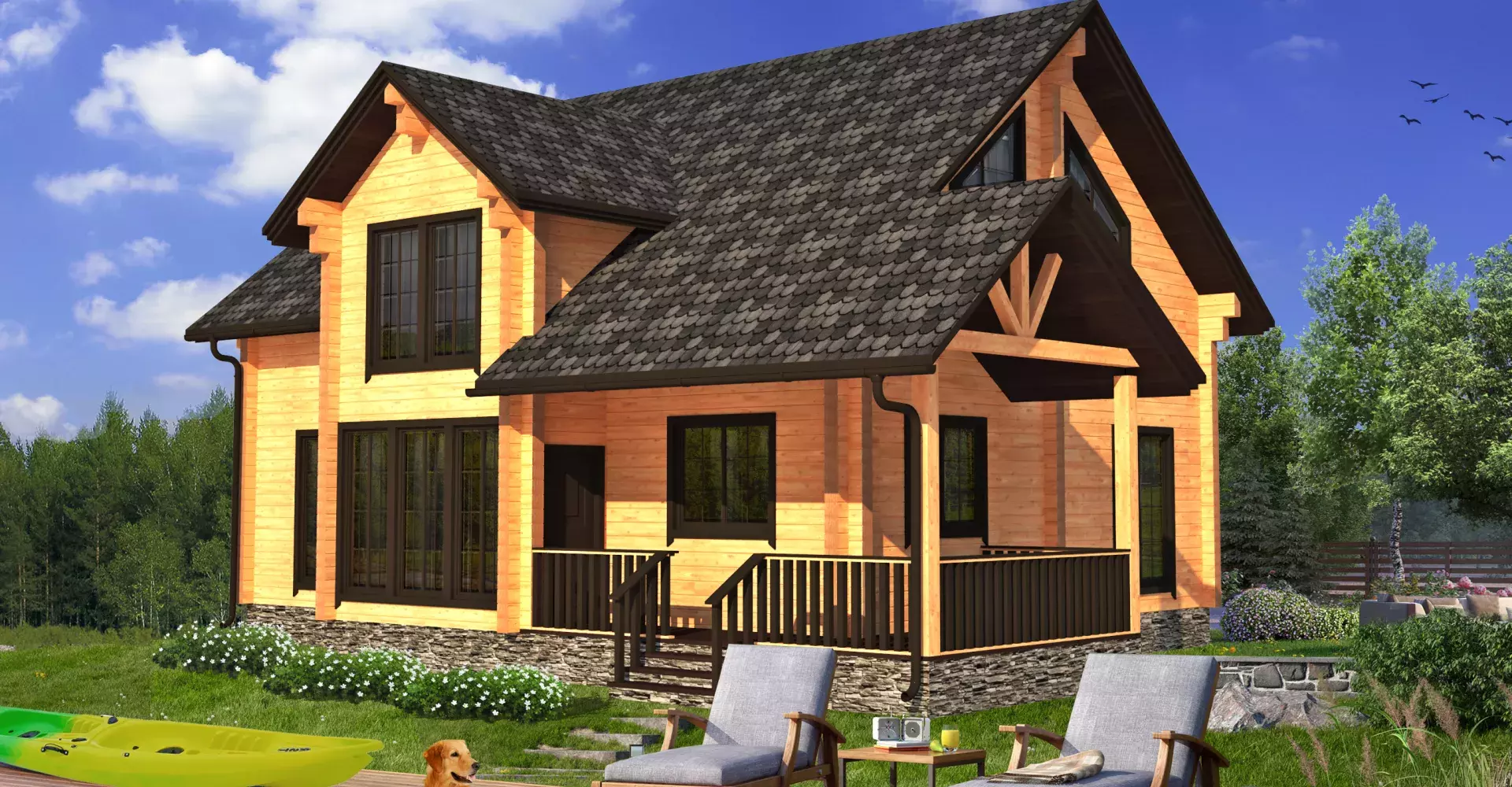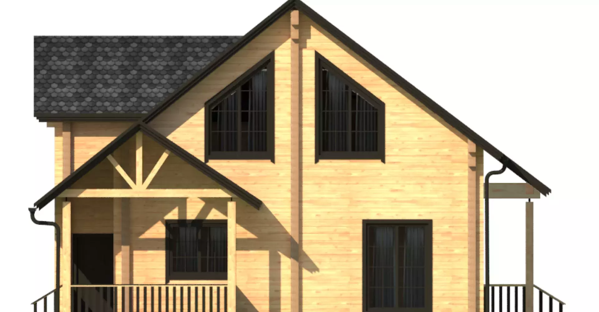 Двухэтажный дом из клееного бруса, комфорт и уют которого не оставят никого равнодушным. На первом этаже помимо технических помещений располагаются спальня, кухня и просторная гостиная с панорамным остеклением. Из гостиной имеется выход на террасу, где можно проводить время и любоваться красотами в теплое время года. Второй этаж представлен тремя спальными комнатами. Одна из них имеет собственную гардеробную и санузел.