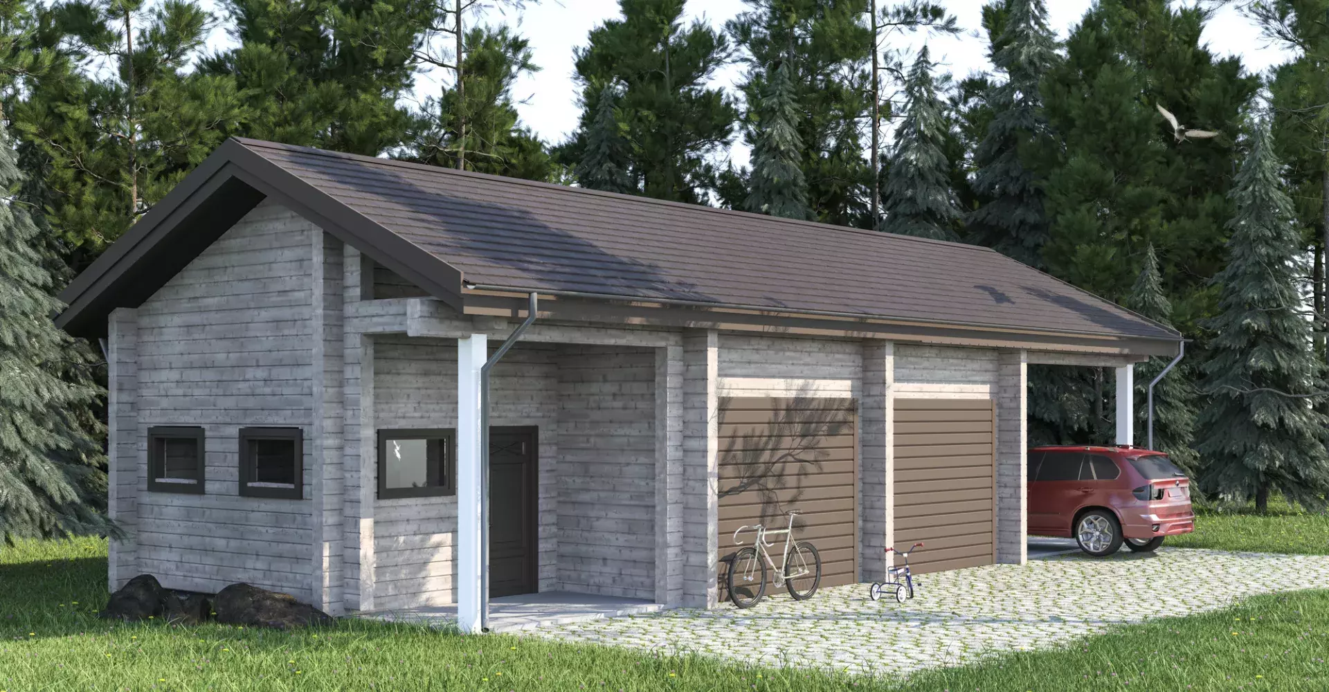 Большой и вместительный гараж на 2 автомобиля. Имеется хозяйственный блок с отдельным входом, а так же навес, где можно устроить автомойку.