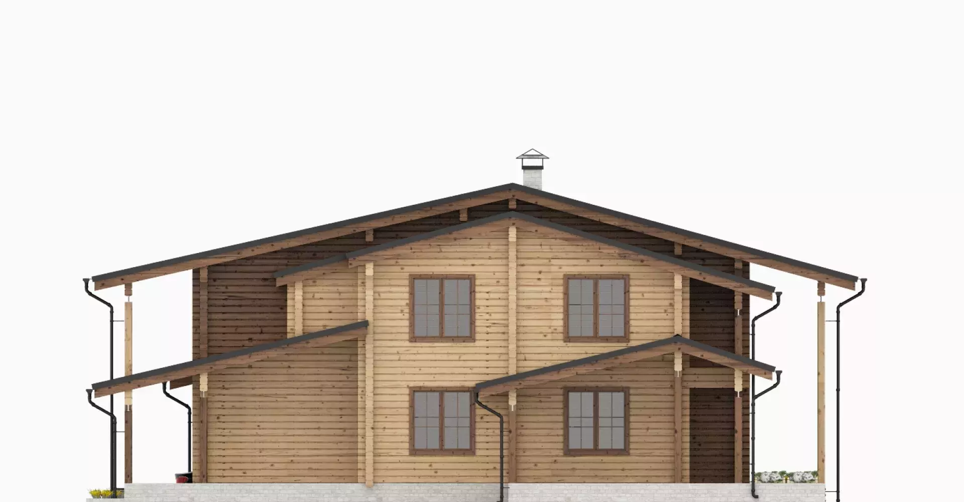 Двухэтажный дом из клееного бруса «под ключ», купить который можно в нашей компании — идеальное решение для комфортного проживания за городом. Планировка дома включает в себя четыре спальни с отдельными санузлами, большую кухню-столовую, гостиную, три террасы, автонавес.