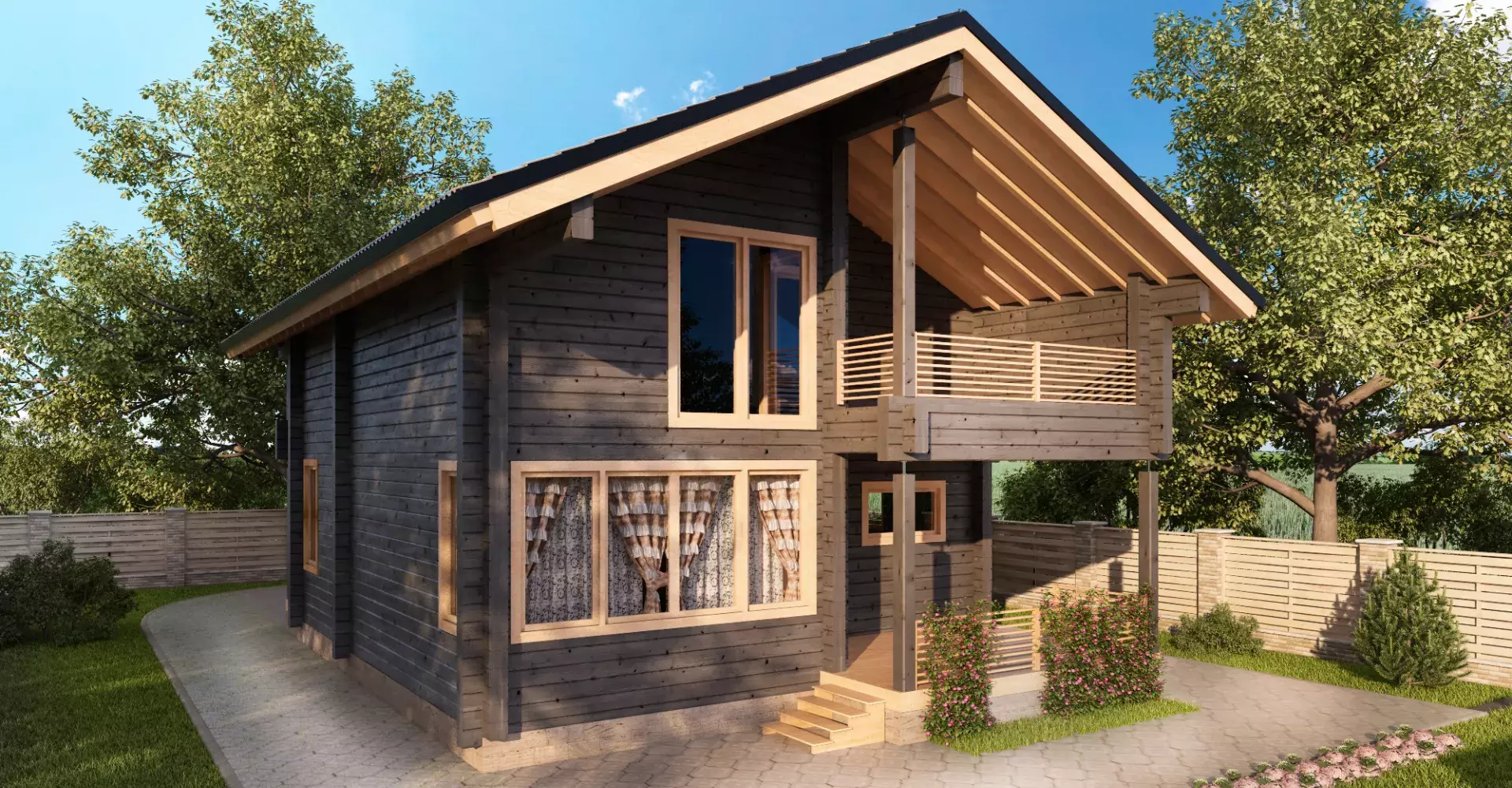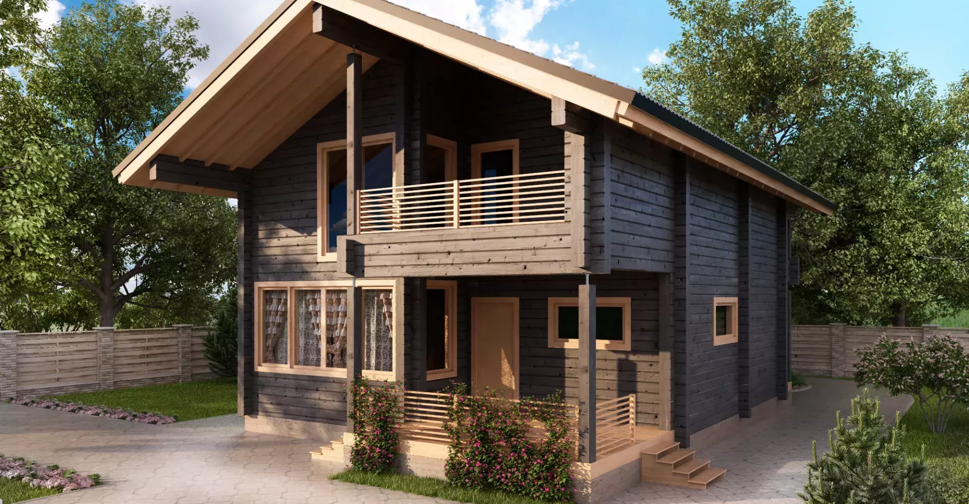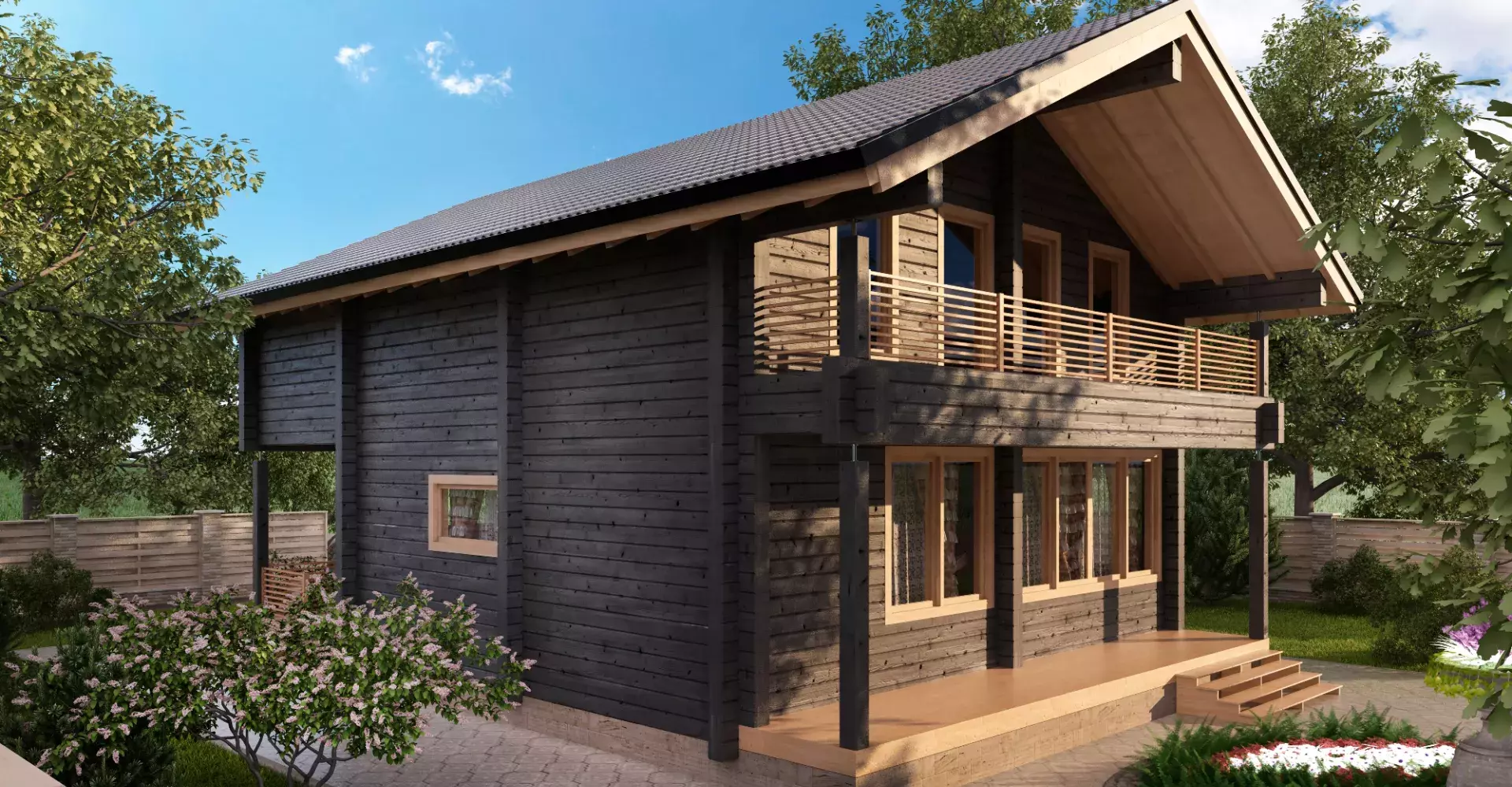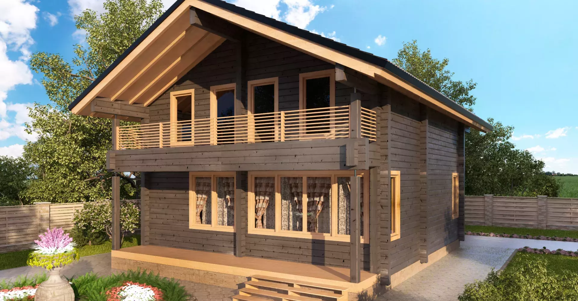 Данный проект станет отличным выбором для начала новой жизни наедине с природой. Двусветное пространство кухни-столовой наполняет дом светом, придавая свежесть классическому планировочному решению, где на первом этаже располагается гостиная и гостевая комната, а на втором этаже - спальни. Террасы и балконы создают плавный переход между интерьером и природой, создавая ощущение гармонии и спокойствия.