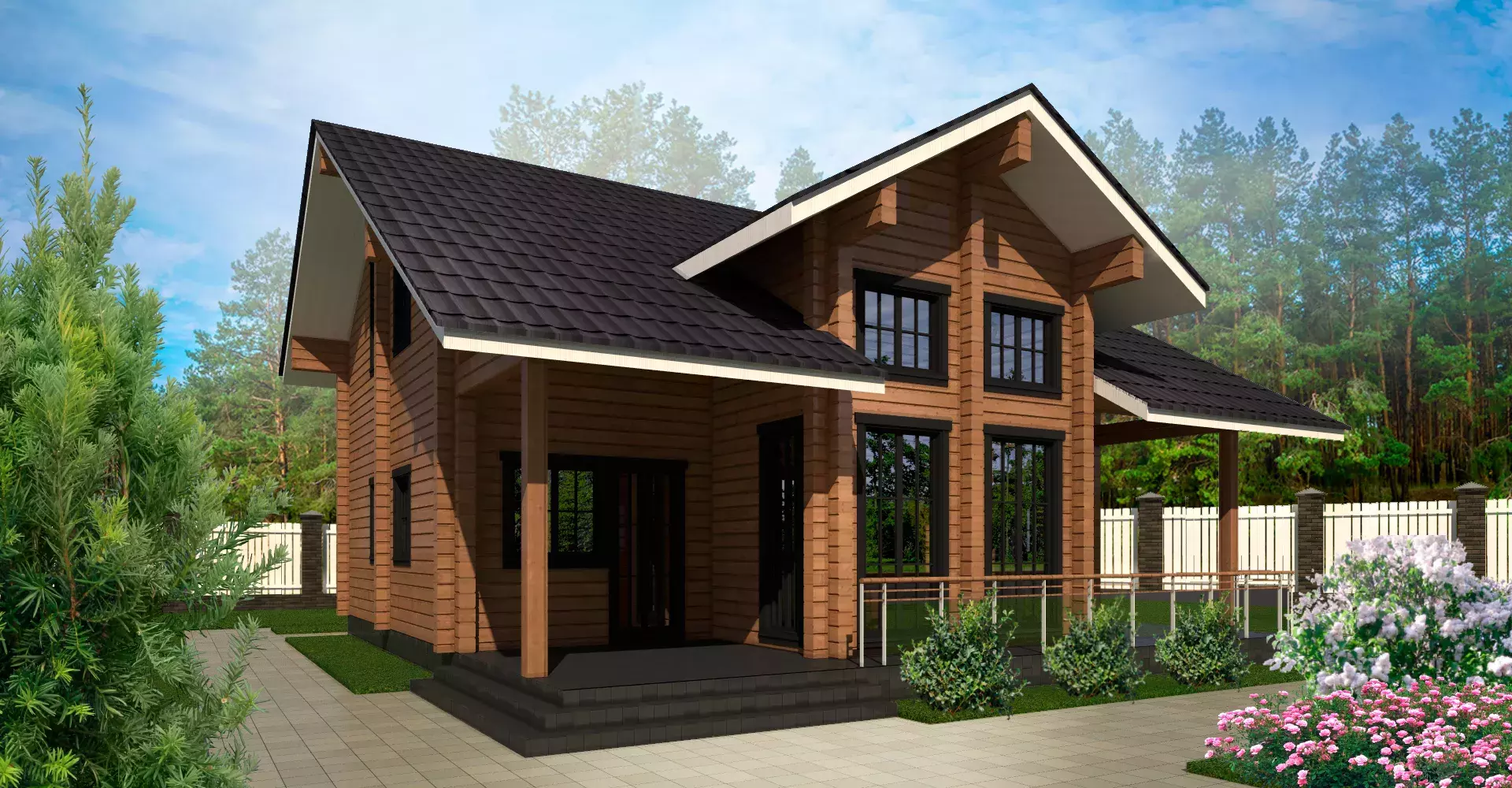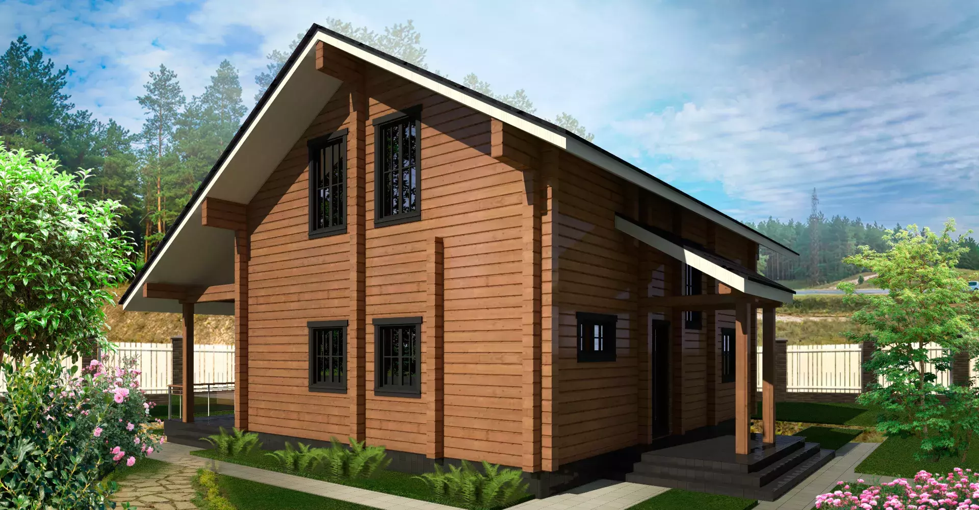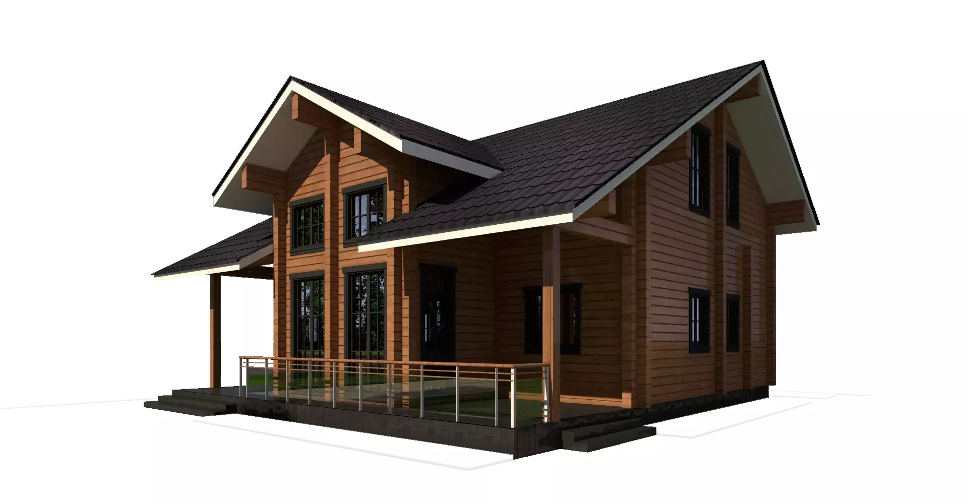 «Калифорния» - адаптированный проект традиционного американского дома из клееного бруса. Отлично демонстрирует доброе отношение к ценностям семьи, комфорту и статусу. Первый этаж – традиционное зонирование: кухня-столовая в одном крыле и закрытые бытовые и жилые помещения в другом, соединенные роскошной гостиной с панорамными окнами и вторым светом. Второй этаж спроектирован для спокойного времяпрепровождения: сна и отдыха. Здесь три спальни и просторный санузел для всех членов семьи.