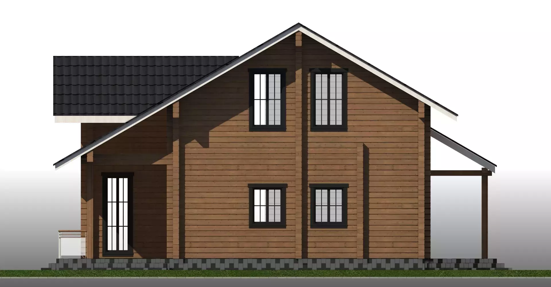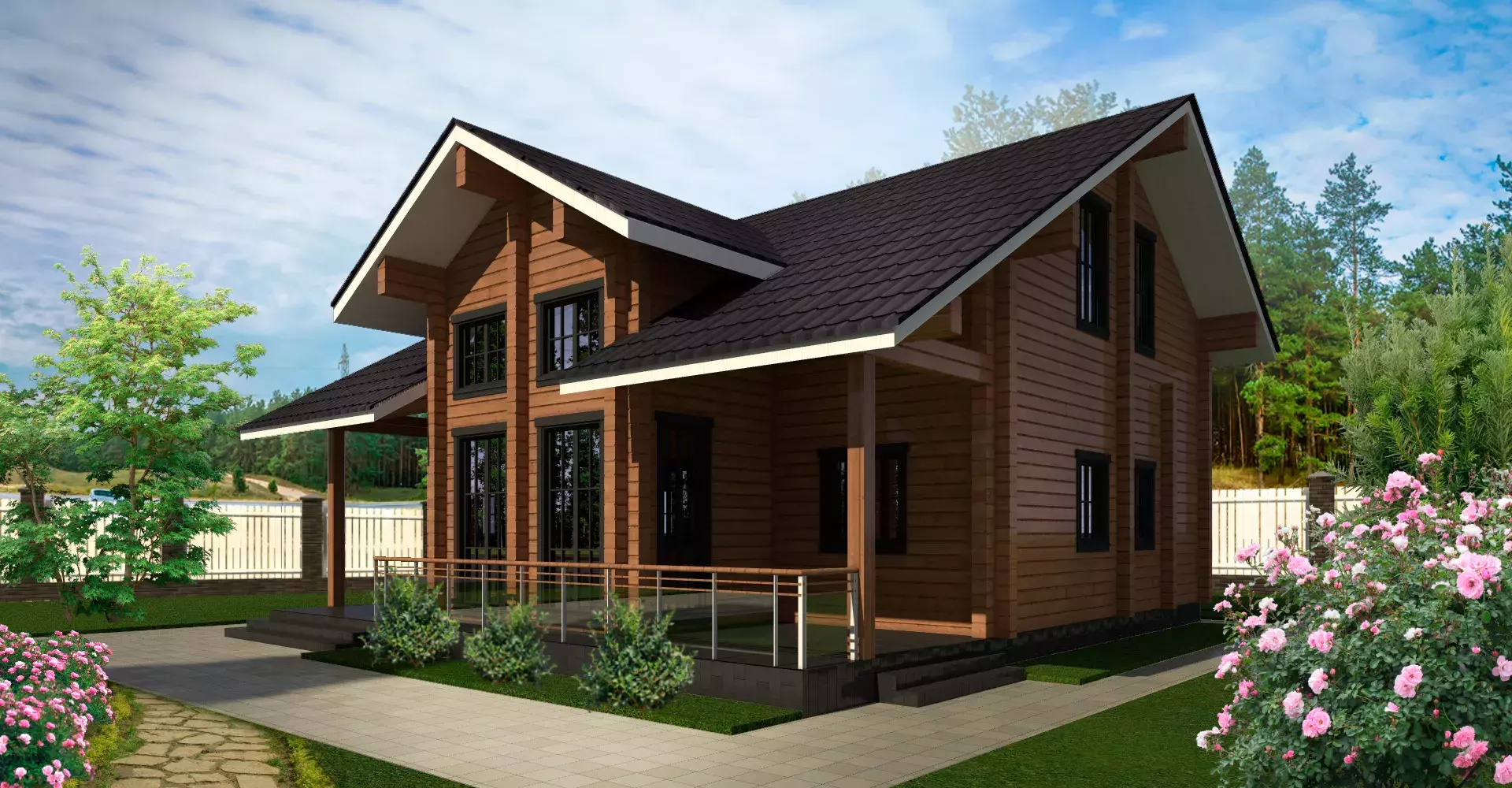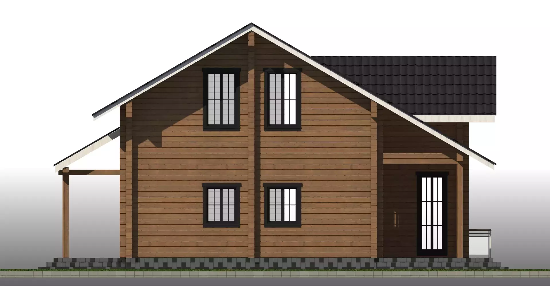 «Калифорния» - адаптированный проект традиционного американского дома из клееного бруса. Отлично демонстрирует доброе отношение к ценностям семьи, комфорту и статусу. Первый этаж – традиционное зонирование: кухня-столовая в одном крыле и закрытые бытовые и жилые помещения в другом, соединенные роскошной гостиной с панорамными окнами и вторым светом. Второй этаж спроектирован для спокойного времяпрепровождения: сна и отдыха. Здесь три спальни и просторный санузел для всех членов семьи.