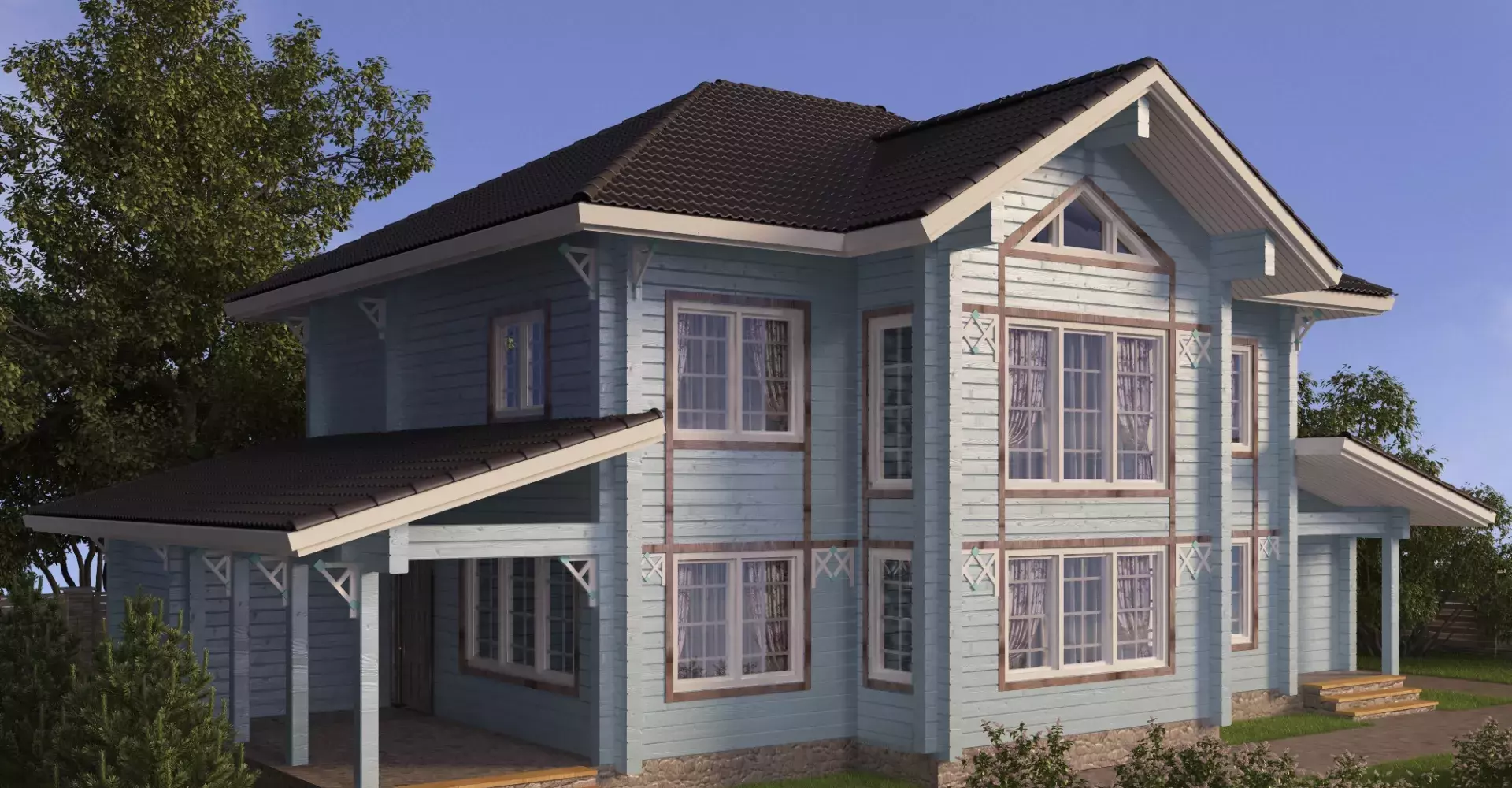 Проект Кантри — это двухэтажный особняк в американском стиле со вторым светом, большой террасой и двумя входами. В доме запроектирована мастер-спальня, две детских, гостевая комната, рабочий кабинет, гостиная, большая кухня-столовая с арочным проходом и вместительной кладовой, гардеробные, прихожая, бойлерная с выходом на улицу.
