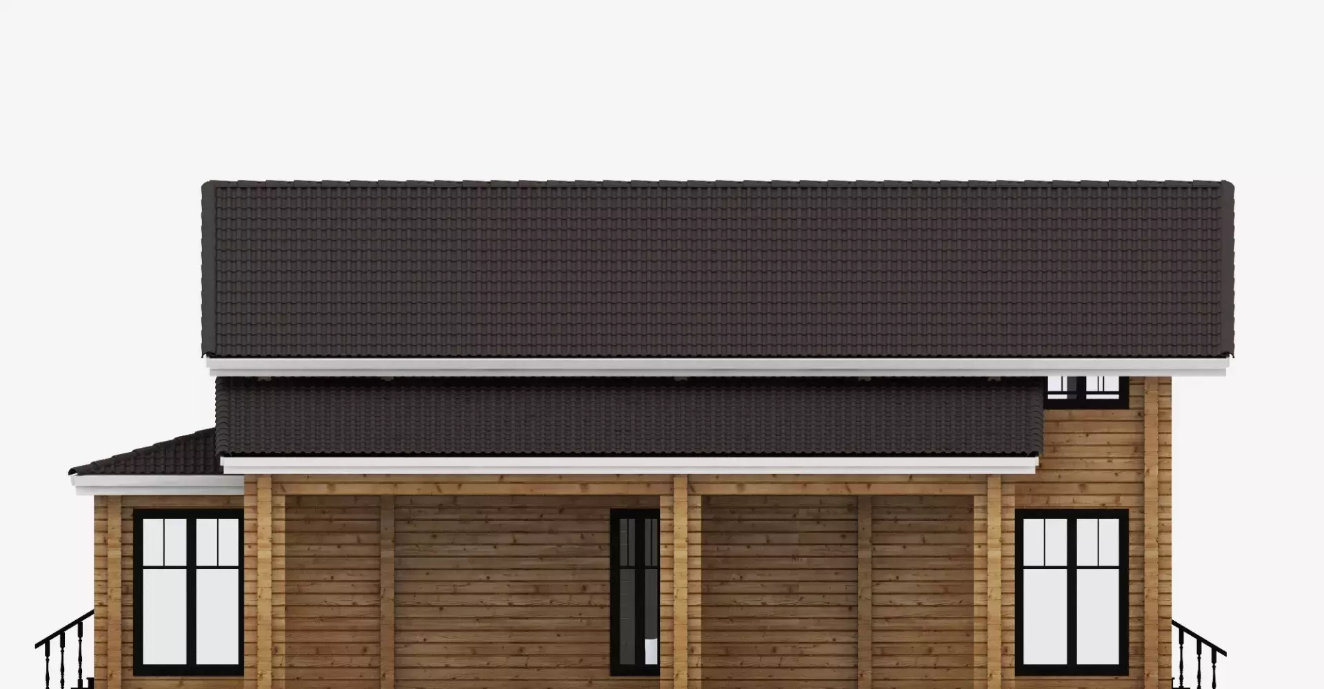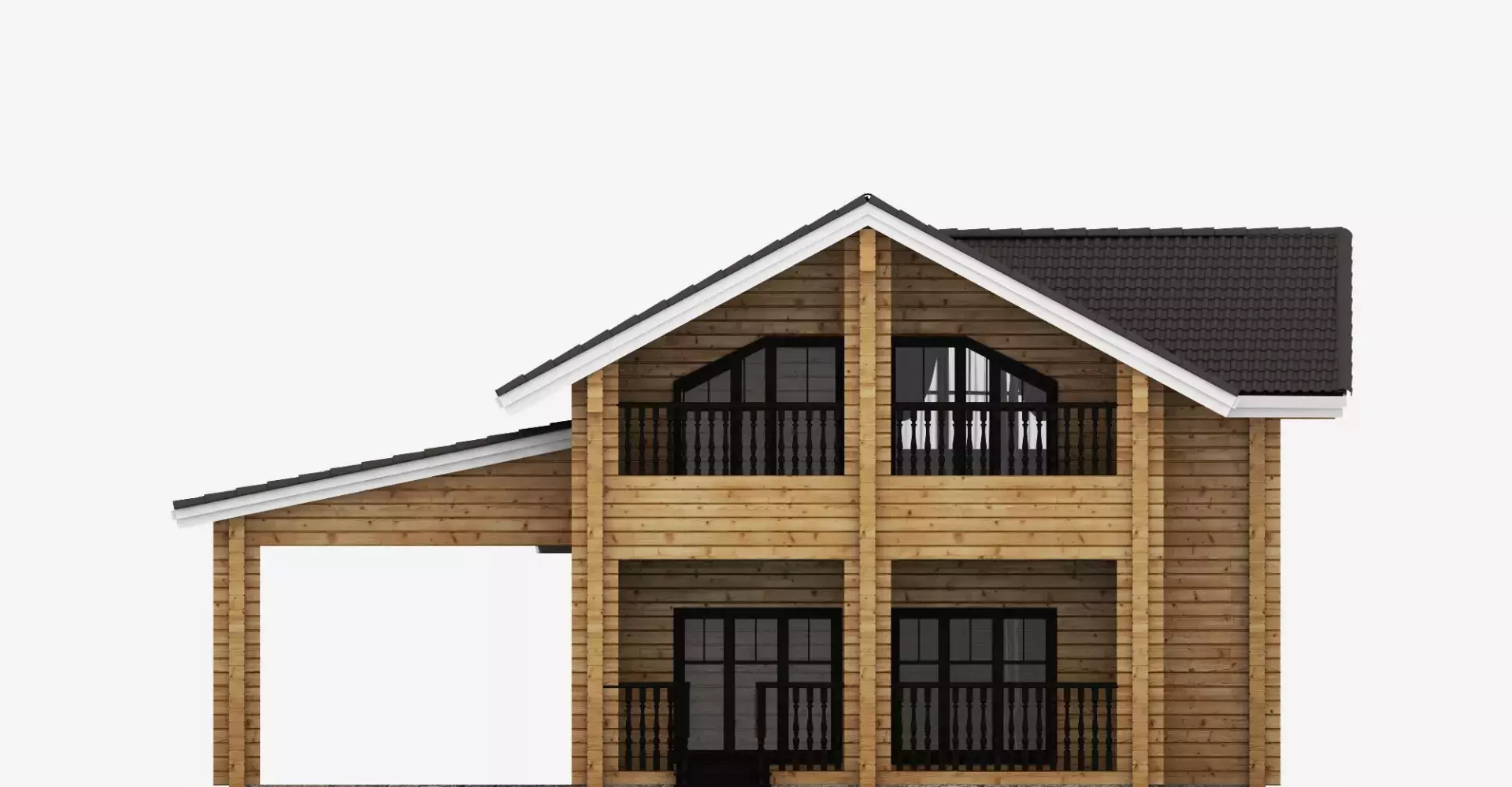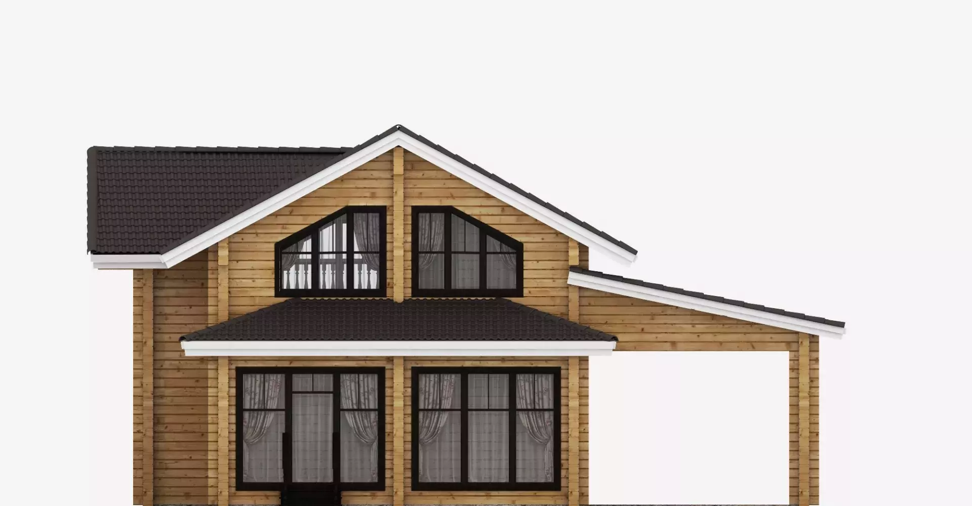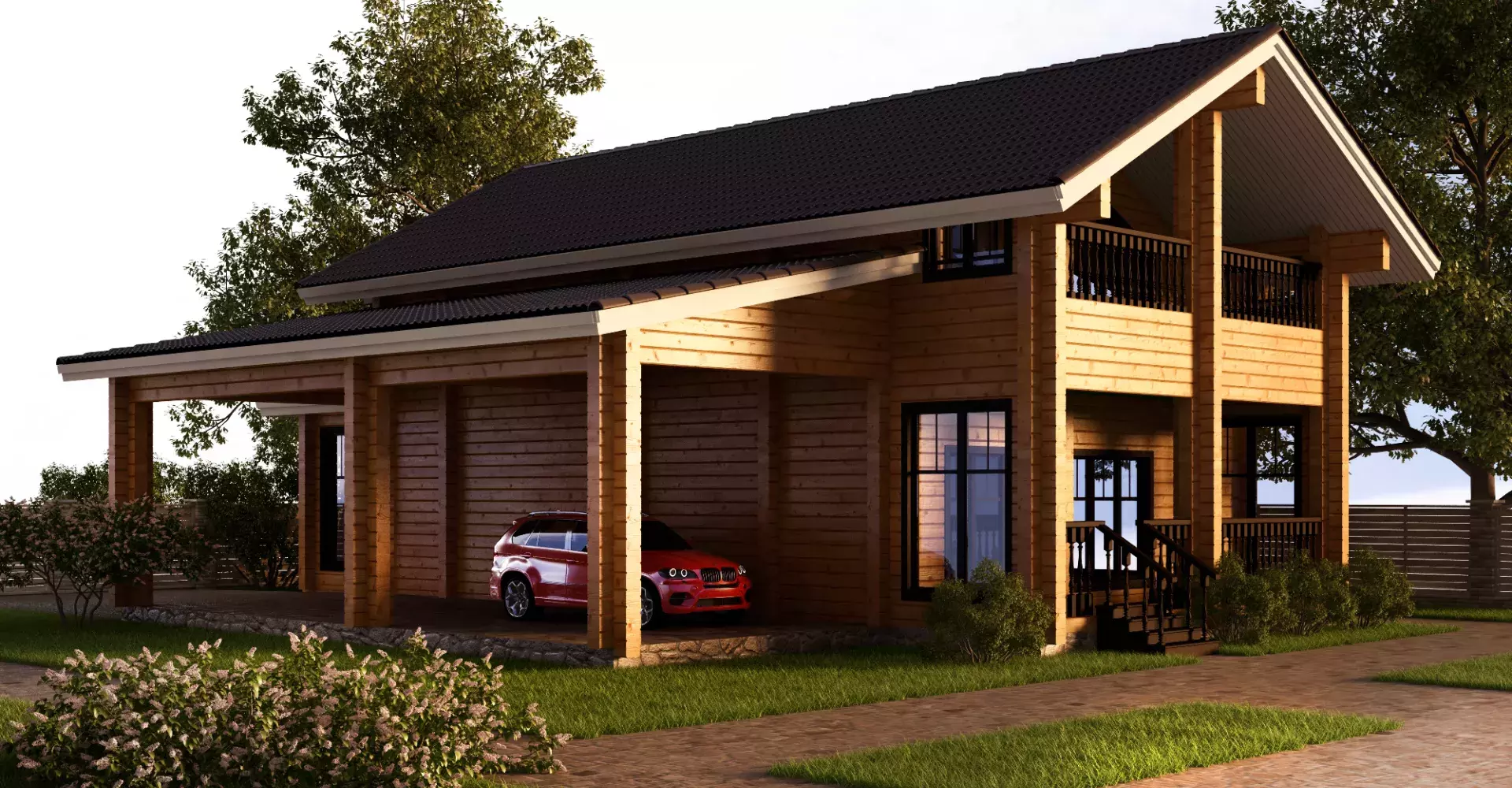 Проект Крокус — это уютный деревянный дом в два этажа площадью 245 м2 с тремя спальнями, гостиной, современной кухней-столовой, верандой, террасой и автонавесом.