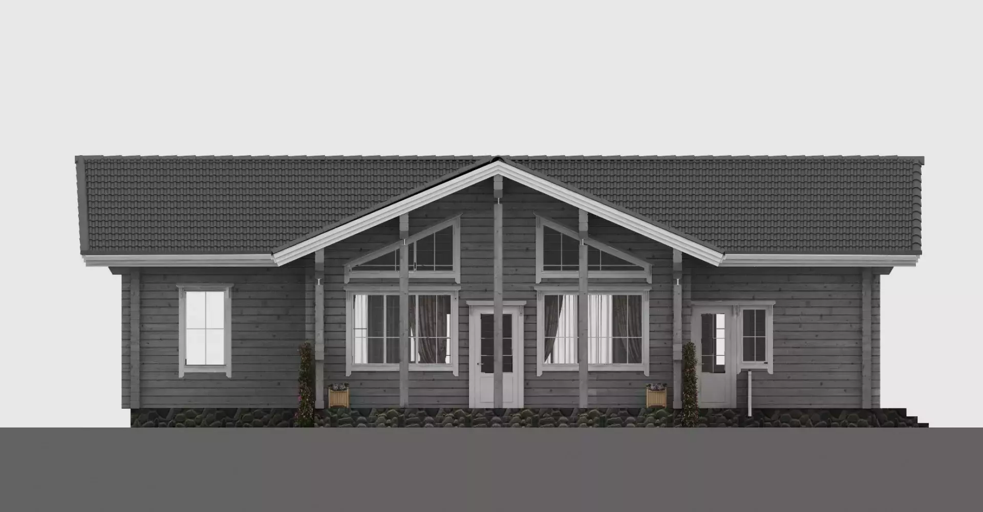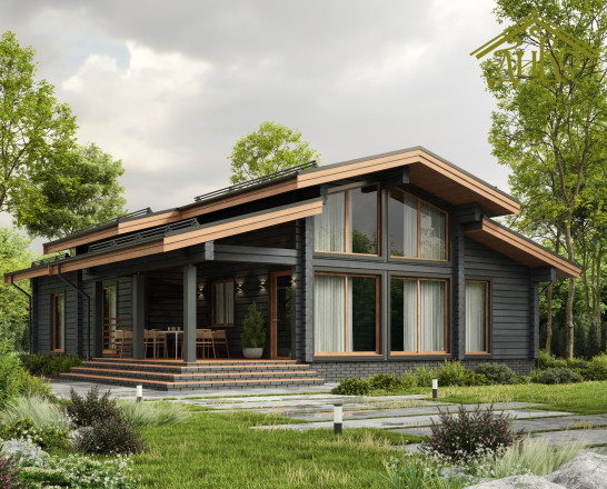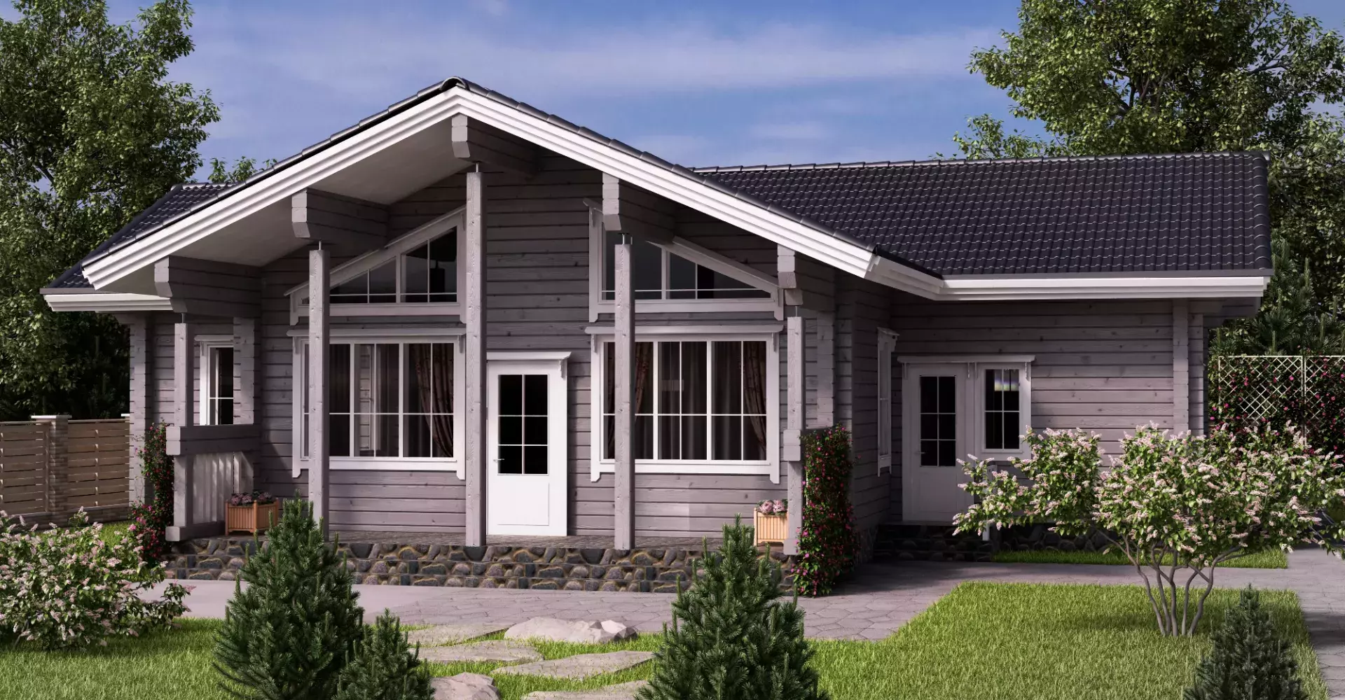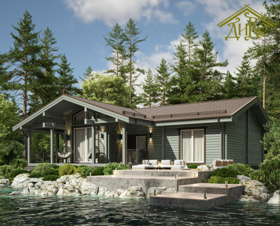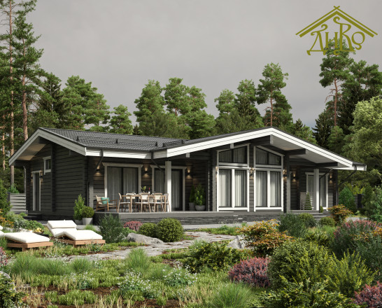 Одноэтажный брусовый дом с современной планировкой — идеальный выбор для загородного участка. В планировку коттеджа входит три спальни, европейская гостиная-столовая, удобная кухня, собственная сауна, технические помещения, большая красивая терраса.